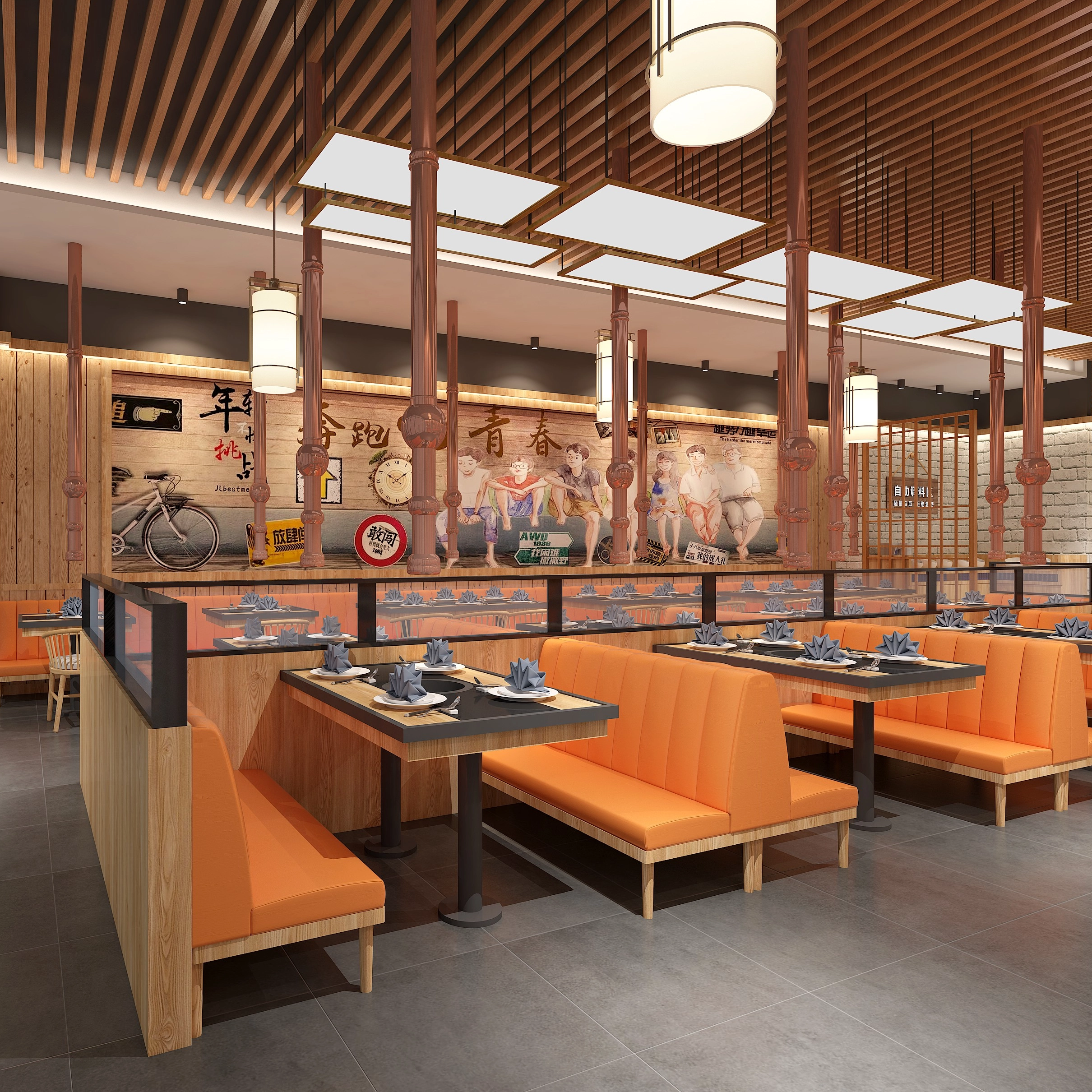 Metal frames combined with high-density foam cushions offer durability and comfort, ensuring long-lasting seating. Additionally, laminate or fire-resistant surfaces are commonly used for easy cleaning and maintenance in high-traffic areas. These choices offer flexibility, durability, and visual depth to various cafeteria sections.